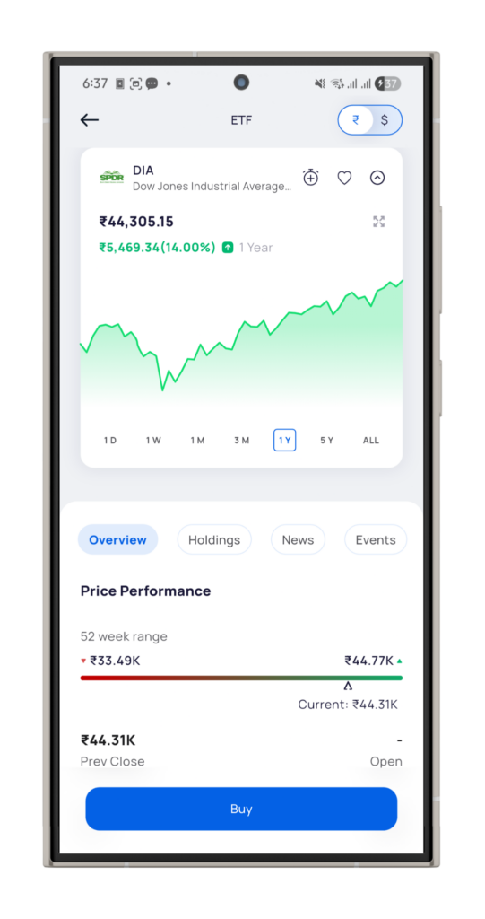 Indian investors can access Dow Jones exposure through Appreciate, which enables direct investing in U.S. stocks and ETFs from India under the Liberalised Remittance Scheme (LRS). This allows Dow exposure to sit alongside domestic assets as part of a globally diversified portfolio.