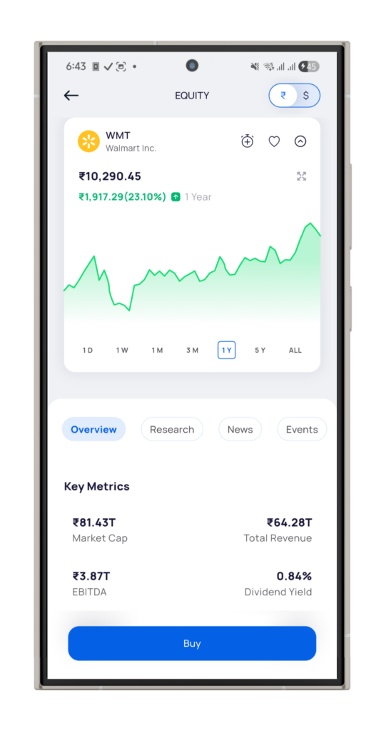 Indian investors can invest in Walmart stock through Appreciate, which enables direct access to U.S. equities from India under the Liberalised Remittance Scheme (LRS). This allows Walmart shares to be held alongside other global stocks and ETFs within a single investment account.