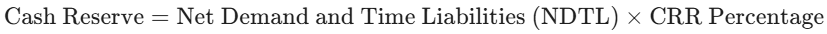 Suppose a local bank has a total NDTL of ₹1,00,00,000. If the current CRR set by the RBI is 3%, the calculation would follow these steps:
